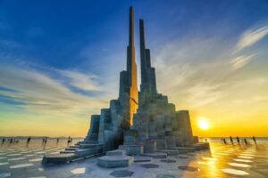 Nghinh Phong Tower: A unique seaside monument inspired by the legend of Lac Long Quan – Au Co and the coastal winds of Phu Yen. Two tall stone structures symbolize the harmony of nature and people.